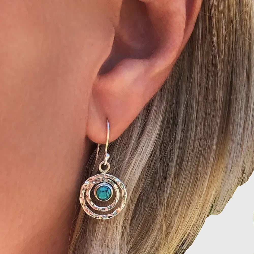Experience the allure of the Boho Saturn Earrings with Turquoise Stone in Silver & Gold – a must-have addition to your jewelry collection!