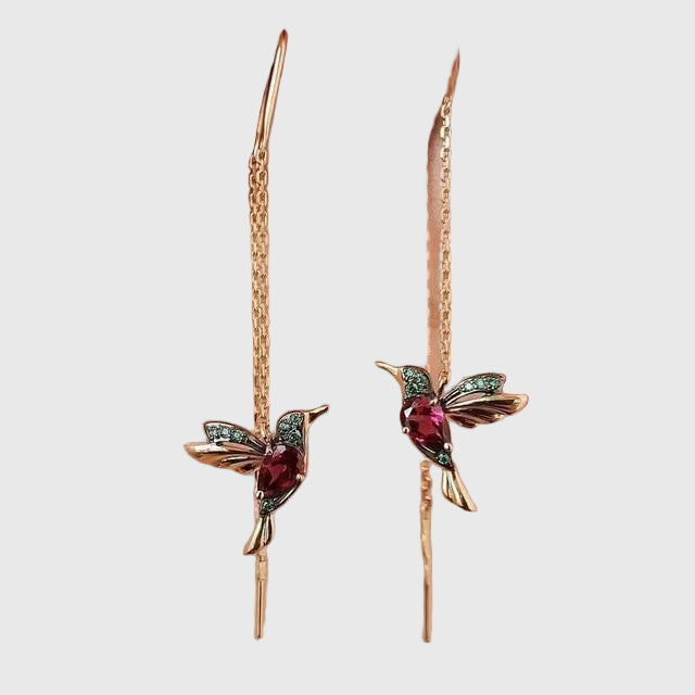 Hummingbird Earrings with Enamel and Zirconia